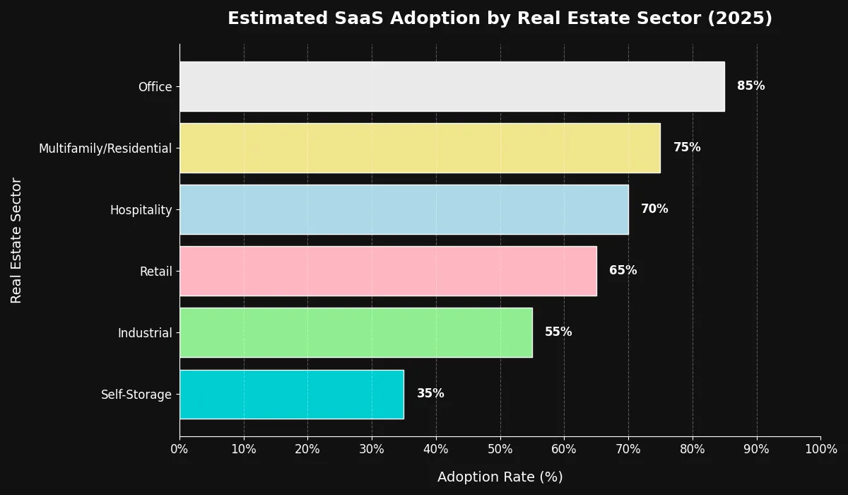 SaaS tools for multifamily and office sectors grew 43% YoY, but storage remains fragmented.